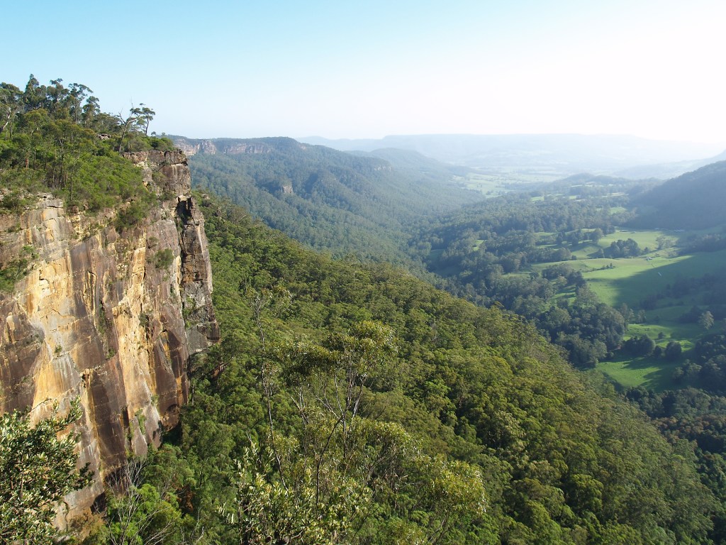 When you finally get there you’ll discover that this is a lovely waterfall. It’s significant in terms of height, though volumes are usually low. There are two viewing platforms, both at the height of the head of the falls, so unfortunately you don’t get to see it from below. At the end of the access road there’s also a third viewpoint, this looking south-east over Kangaroo Valley, and with the right evening light it’s spectacular.